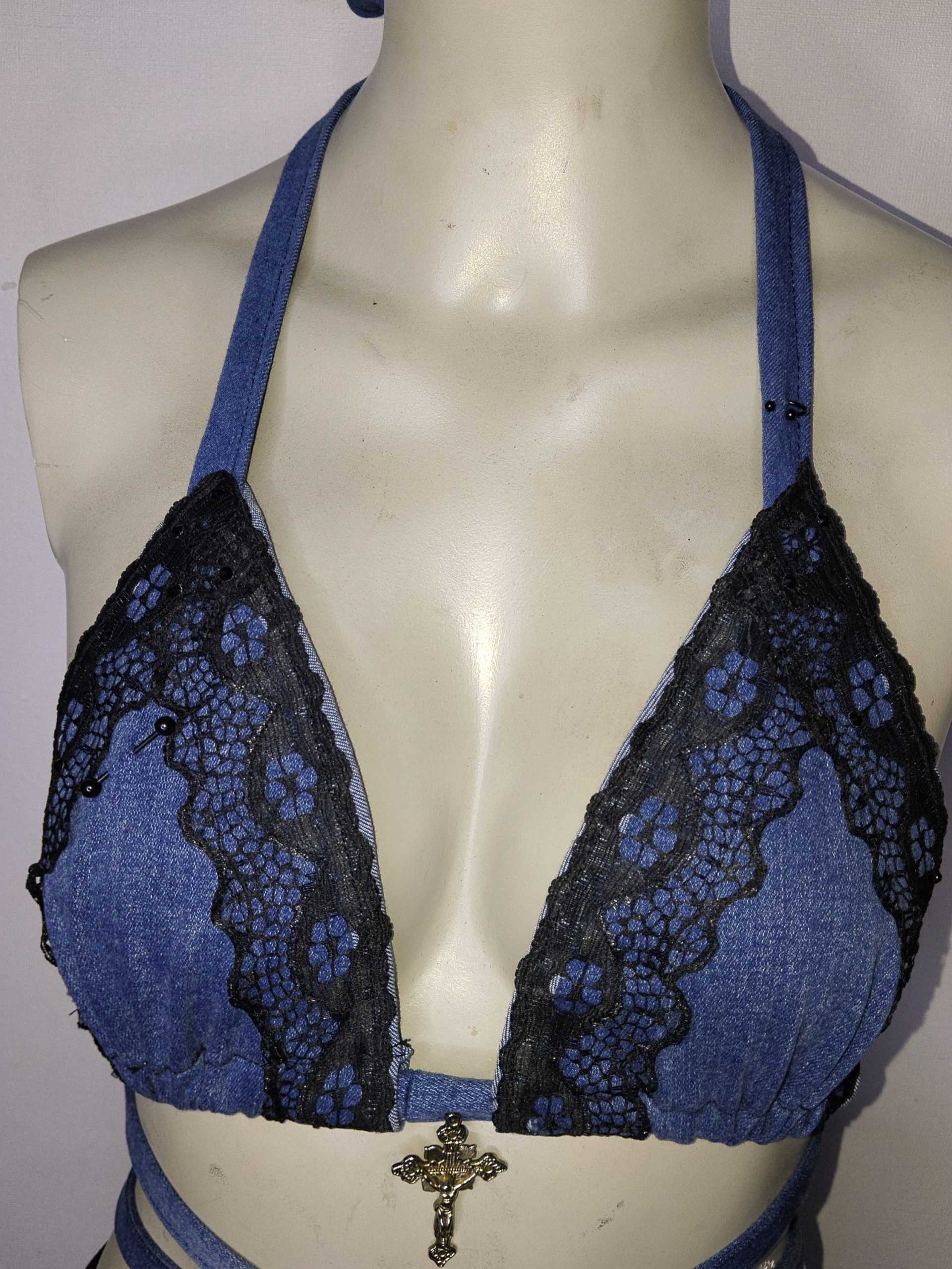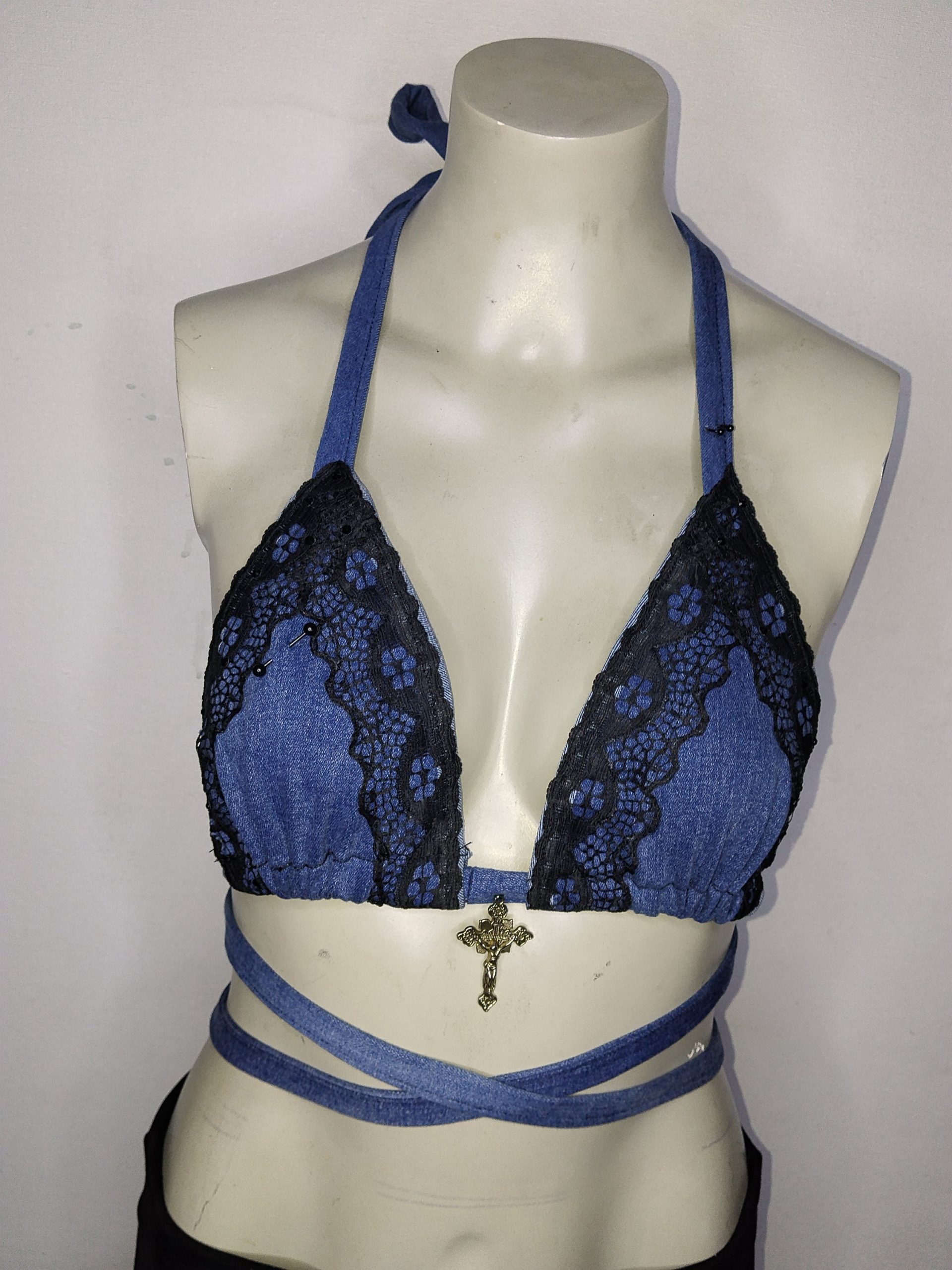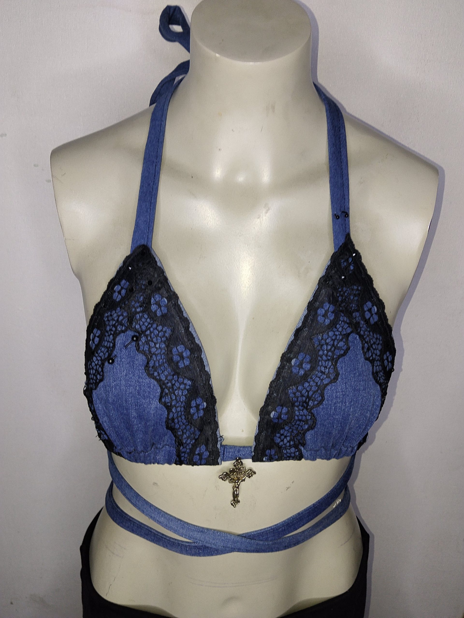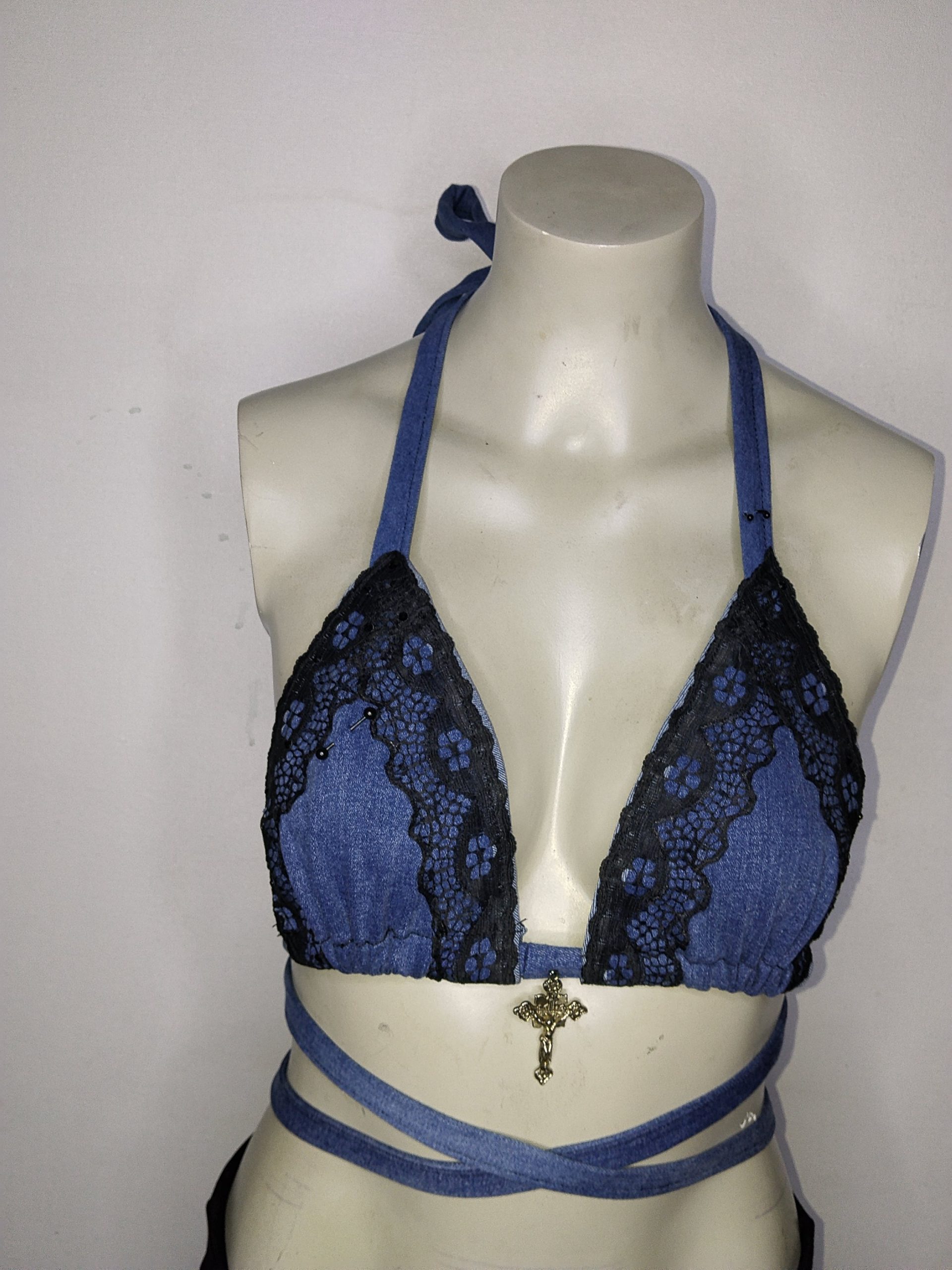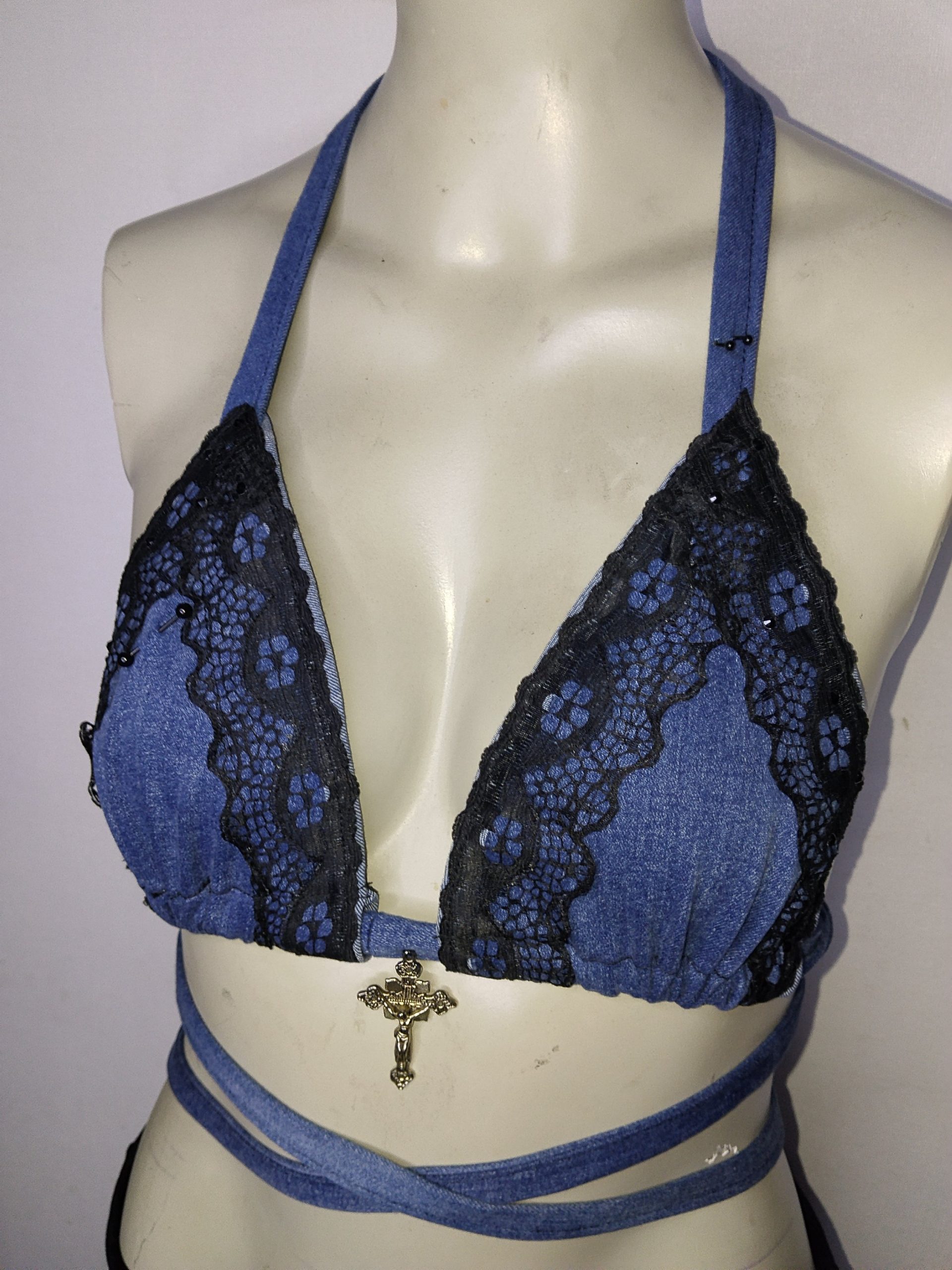 / Top bikini mezclilla encaje